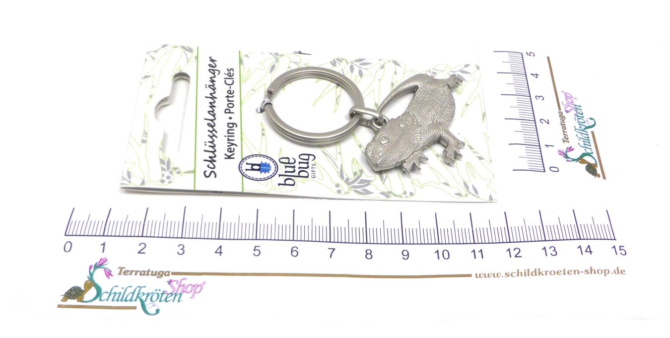 Der Schlüsselanhänger in Form einer Bartagame ist ein bezauberndes Geschenk, für jeden Reptilien-, bzw. Agamenliebhaber. Der Bartagamen - Schlüsselanhänger ist beidseitig dreidimensional, aus massivem Metallguss. Die Schuppen und Körperkonturen der Bartagame sind naturnah ausgearbeitet.