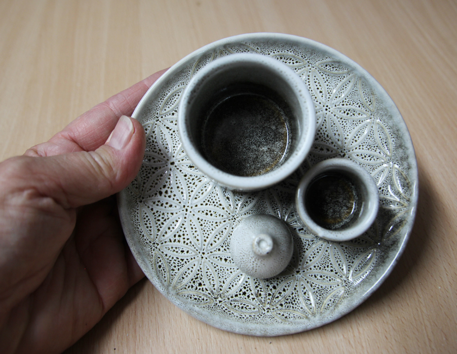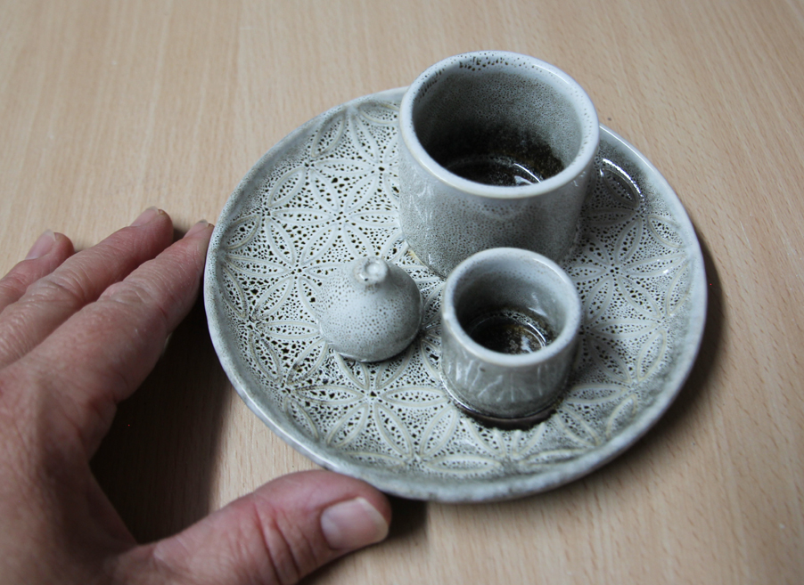 Beiger Räucherstäbchenhalter aus Keramik, Blumen des Lebens,