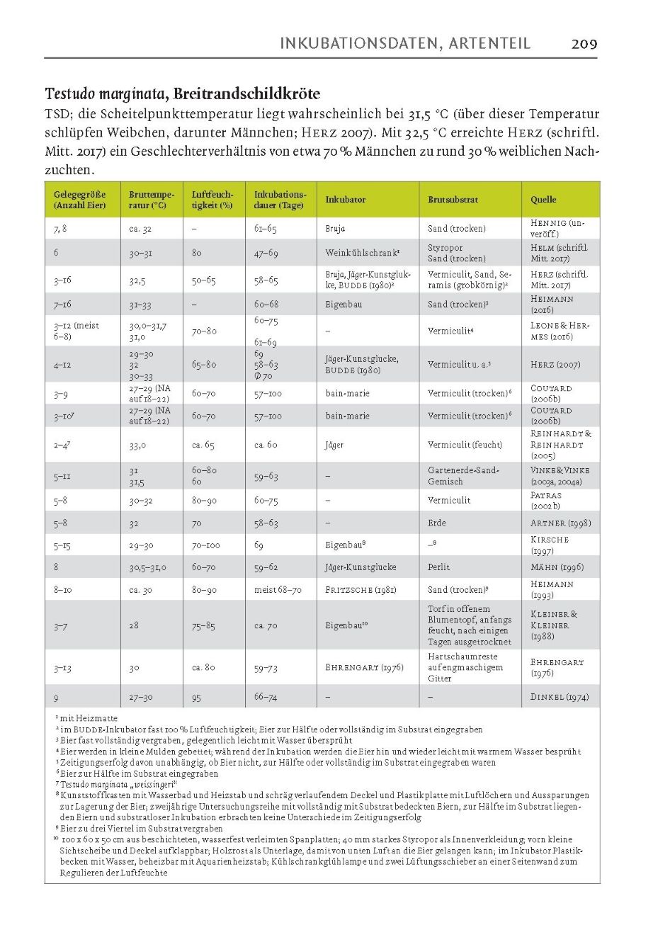 Das Buch gibt einen umfassenden und aktuellen Überblick zur Inkubation von Eiern von über 200 in Menschenobhut vermehrten Land- und Wasserschildkrötenarten bzw. -unterarten. Für die mehr als 200 Tabellen mit Angaben zu Gelegegrößen, Bruttemperaturen, Luftfeuchtigkeit, Inkubationsdauer sowie zu verwendeten Brutapparaten und -substraten wurden zahlreiche Publikationen aus mehreren Jahrzehnten sowie bisher unveröffentlichte Zuchtdaten von Schildkrötenfreunden ausgewertet. Zudem geht das Buch ausführlich auf geeignete Inkubatoren, Brutsubstrate und die Geschlechtsfixierung ein.