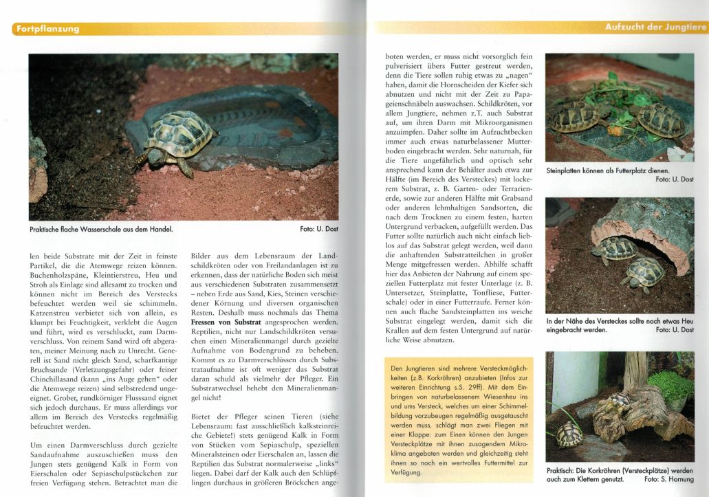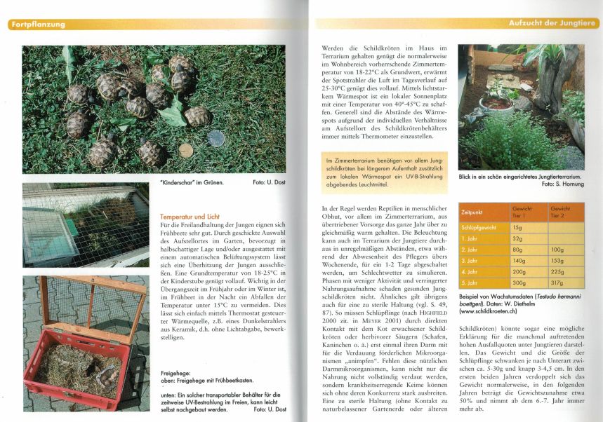 Aus dem Inhalt: Natürliche Lebensweise und Verhalten im natürlichen Lebensraum, Einrichtung einer Freilandanlage, Einrichtung und technische Ausstattung eines Terrariums, Ernährung, Durchführung