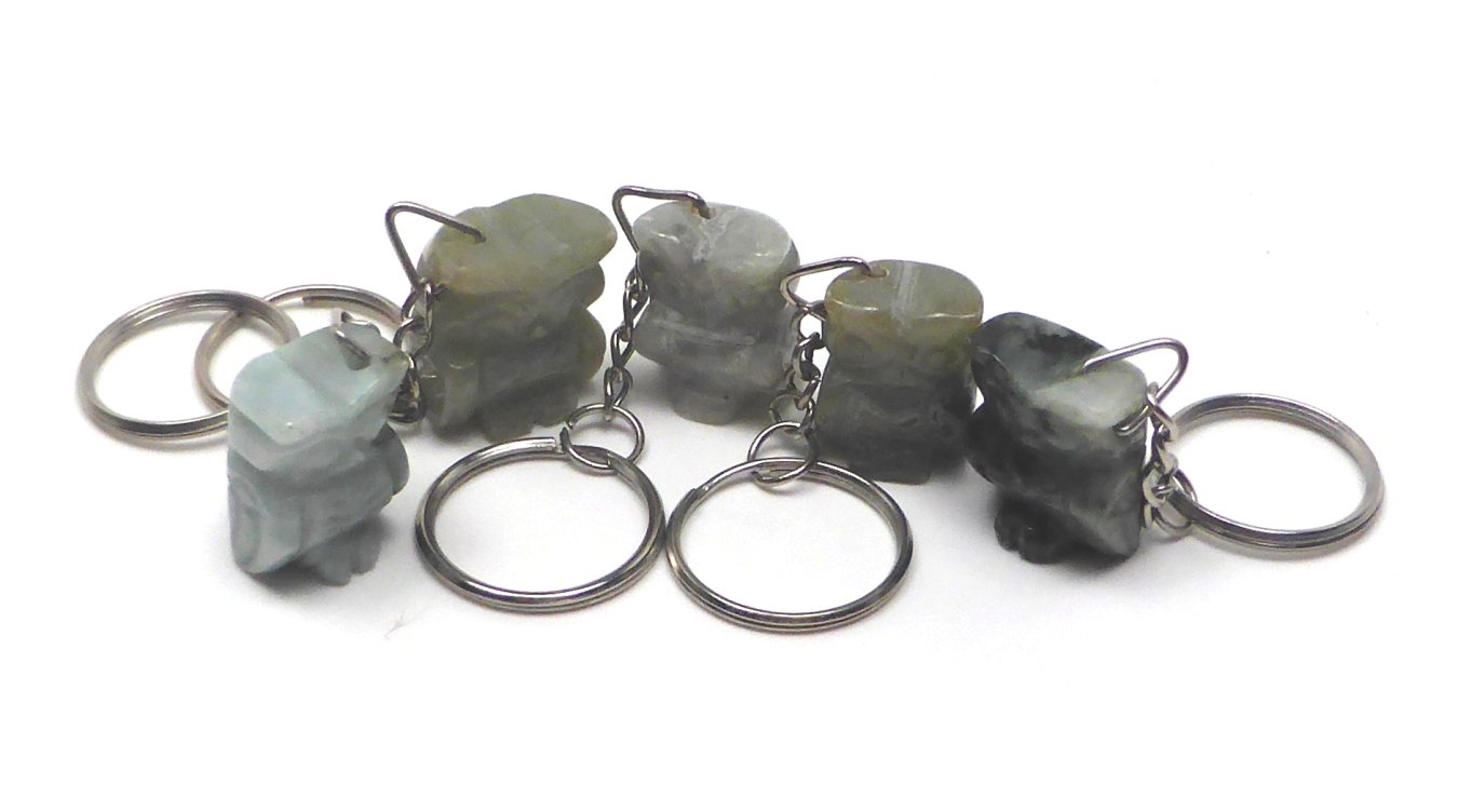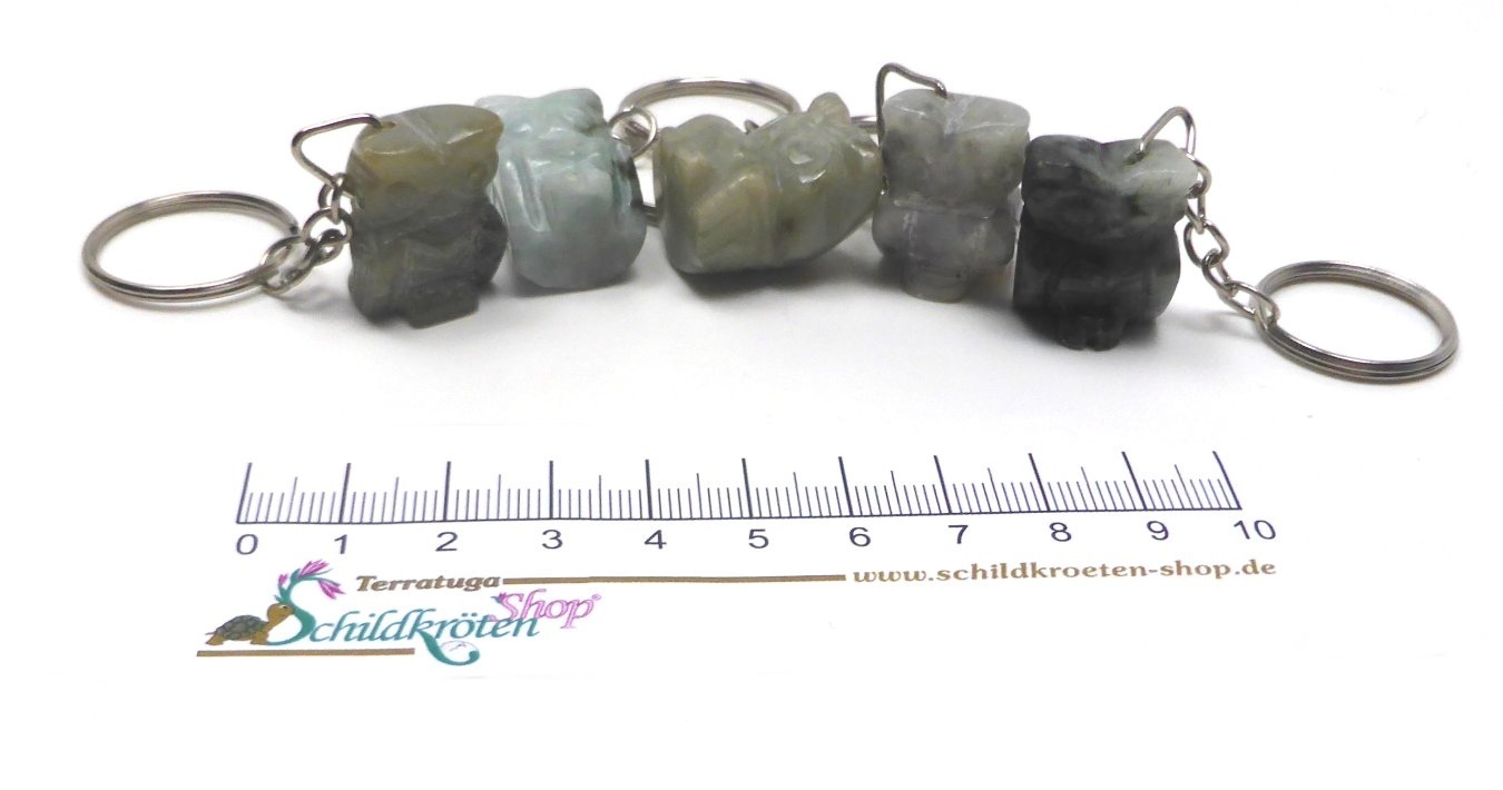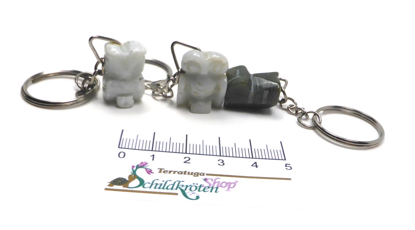 Schöner ca. 2,4 cm großer Schlüsselanhänger, in Form einer Eule aus Halbedelsteinen wie: Jadeit, Jaspis, versteinertem Holz oder Quarz. Die Eulen sind aus Natursteinen handgemacht (geschliffen, gefräst oder geschnitzt), daher ist jede ein Unikat - wie auf den Artikelbildern zu sehen. Die Farben und Größen variieren zwischen weiß, grün, schwarz, grau und orange Tönen. Gerne können Sie uns ihre Farbwünsche im Kommentarfeld mitteilen, je nach Lagerbestand werden wir diese berücksichtigen oder Kontakt zu Ihnen aufnehmen.