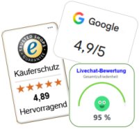 Die Rückmeldungen via TrustedShops und Google-Rezessionen zeigen durchaus, dass die Kunden zufrieden sind und wir mit unserer Art und unserer Leistung. Aber natürlich scheuen wir uns nicht Kritik ernst zu nehmen und weiter auch an uns zu arbeiten. |