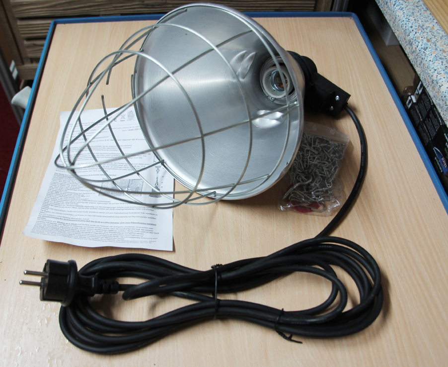 max. 250 W Leuchtmittel für Geräte mit langem Schutzgitter