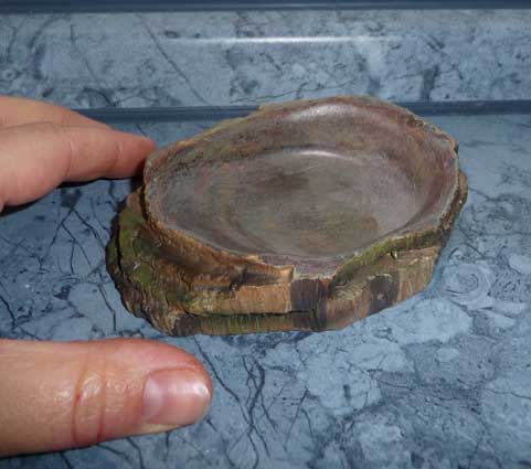 Als Wasser- und Futterschale geeignet. Polyesterharz, lebensmittelunbedenkliches Material. Innenliegende Treppe erleichtert Zugang zum Wasser bzw. Futter.