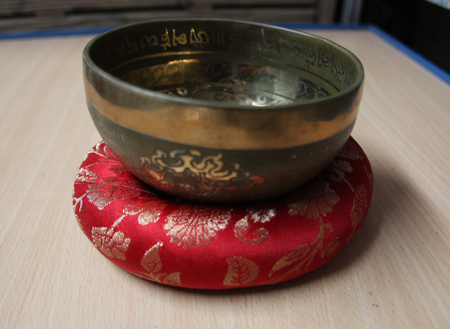 Preview: Rotes rundes Kissen für Klangschale 15 cm