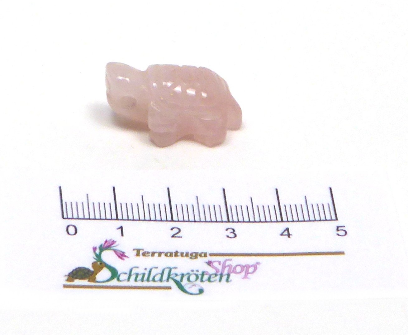 Schöner ca. 2,5cm großer Kettenanhänger aus Rosenquarz in Form einer Landschildkröte, wie auf den Artikelbildern zu sehen, kann die Farbe etwas variieren. Die Panzerstukturen sind fein fühlbar angedeutet.