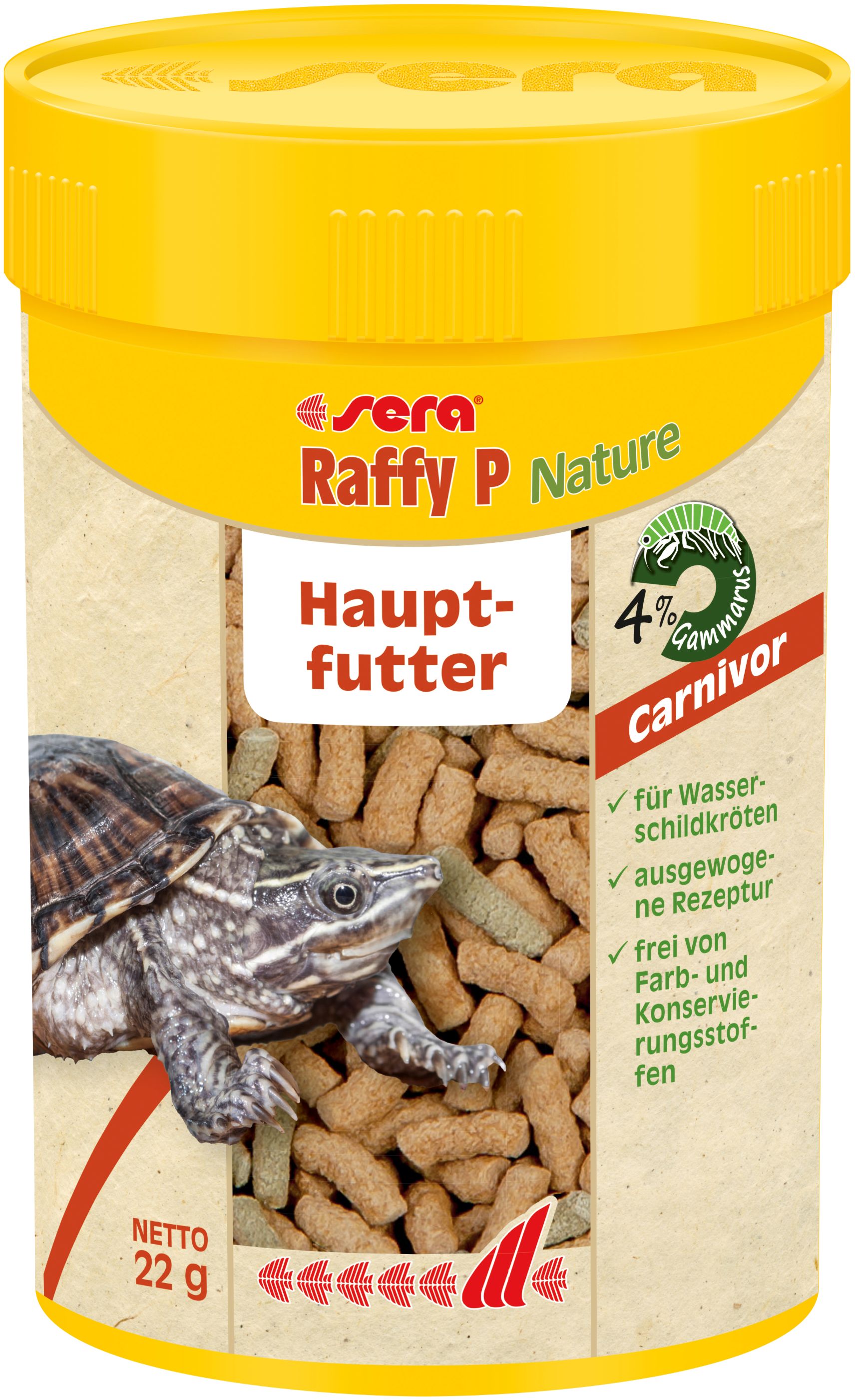 - sera Raffy P Nature ist das Hauptfutter aus schwimmendem, schonend hergestelltem Granulat für Fleisch fressende Reptilien wie Wasserschildkröten.